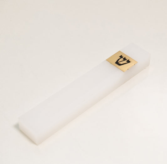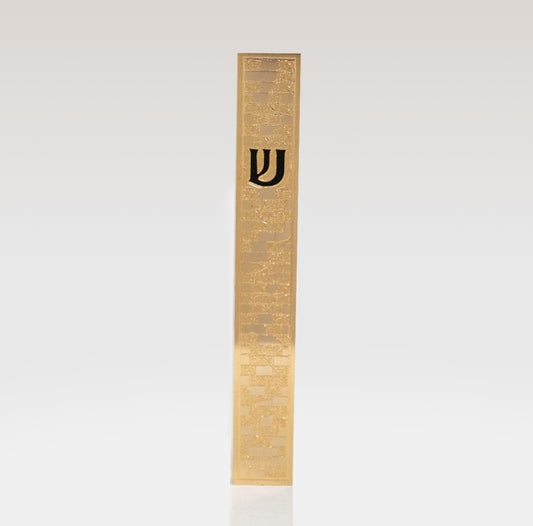 בית מזוזה זכוכית אקריליק בעיצוב אומנותי בשילוב ש מקראית ציפוי זהב