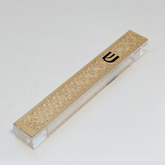 בית מזוזה זכוכית אקריליק בעיצוב אומנותי בשילוב זהב דגם קלאסי