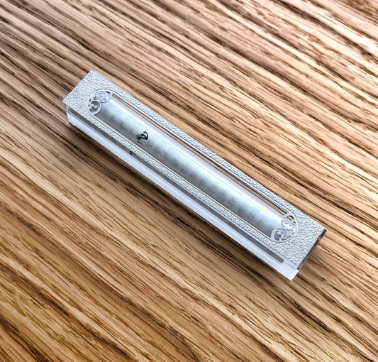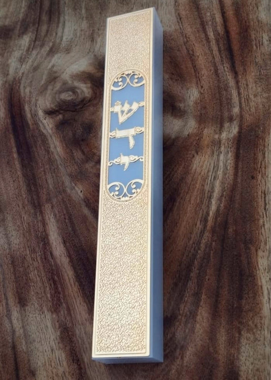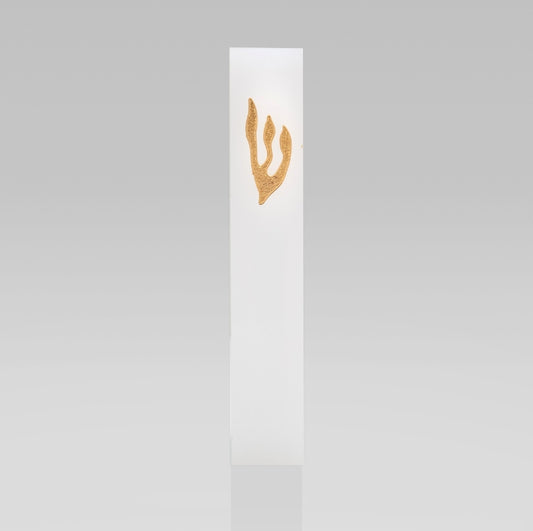 בית מזוזה זכוכית אקריליק בעיצוב אומנותי בשילוב ש מקראית ציפוי זהב
