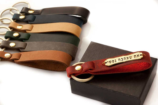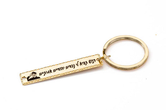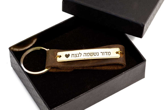 מחזיק מפתחות עם חריטה "שמע ישראל" עור בשילוב ציפוי זהב