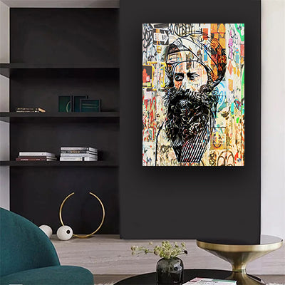 1481 - ציור פופ אפ גרפיטי מודרני של הבן איש חי על קנבס או זכוכית