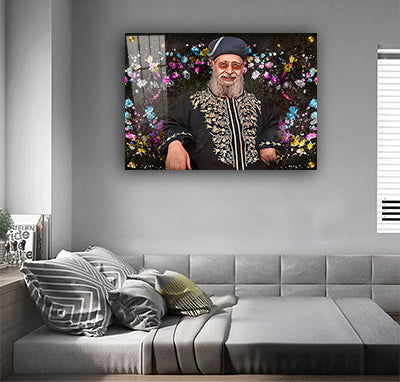 1592-ציור גרפיטי מודרני של הרב עובדיה יוסף על קנבס או זכוכית מחוסמת