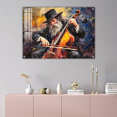 2033 - ציור צבעוני של חסיד מנגן בכינור על קנבס או זכוכית