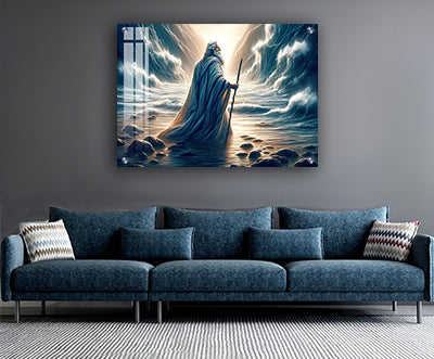 2051 - ציור יהדות של משה רבנו בקריעת ים סוף להדפסה על קנבס או זכוכית