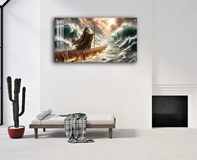 2055 - ציור יהדות של מלבני של משה רבנו בקריעת ים סוף על קנבס או זכוכית