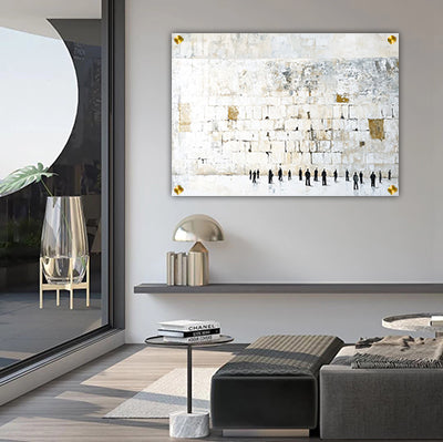 2060 - ציור אבסטרקט של הכותל בגווני לבן וזהב על קנבס או זכוכית