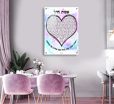 2419 - ברכת אשת חיל צבעונית בצורת לב על קנבס או זכוכית