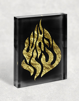 2694 – תמונה של האש שלי בזהב על בלוק זכוכית אקרילי