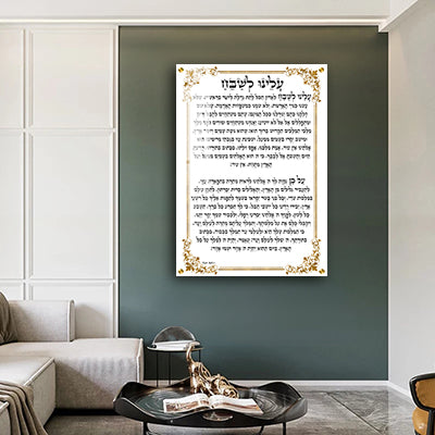 2706 - ברכת עלינו לשבח בגווני לבן וזהב על קנבס או זכוכית