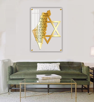 2778 - ברכת מזמור לתודה בשילוב מגן דוד ומפת ארץ ישראל על זכוכית שקופה אקסטרה קליר