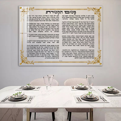 2874 - ברכת פיטום הקטורת מעוצבת על זכוכית מחוסמת ושקופה בשחור וזהב