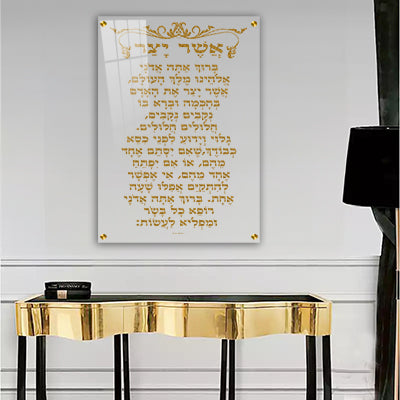 2878 - ברכת אשר יצר בזהב על זכוכית אקסטרא קליר מחוסמת ושקופה
