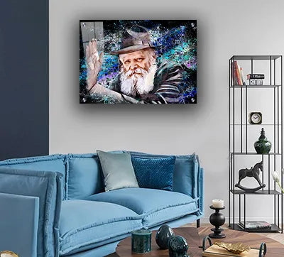 288 - ציור גרפיטי צבעוני של הרבי מליובאוויטש על קנבס או זכוכית מחוסמת
