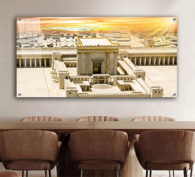 3019 - תמונה של בית המקדש בשקיעה על זכוכית או קנבס