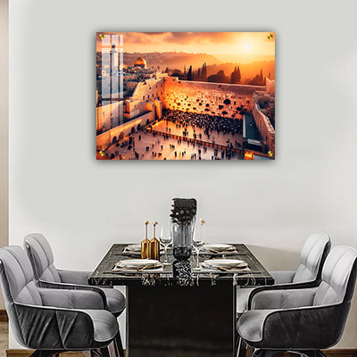 3113 - ציור של הכותל המערבי בשקיעה על קנבס או זכוכית מחוסמת