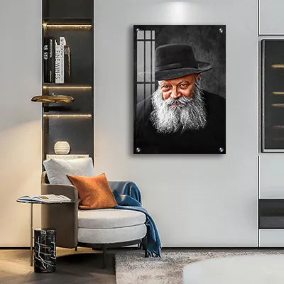 322 - ציור ריאליסטי של הרבי מלובביץ' על קנבס או זכוכית מחוסמת