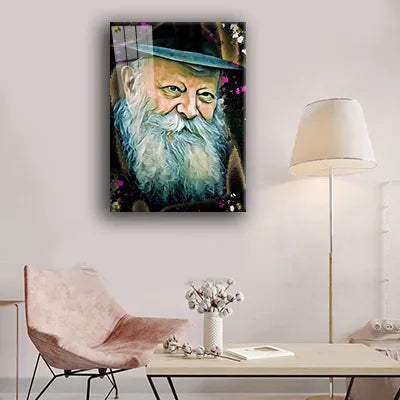 635 - ציור גרפיטי צבעוני של הרבי מליובאוויטש על קנבס או זכוכית מחוסמת