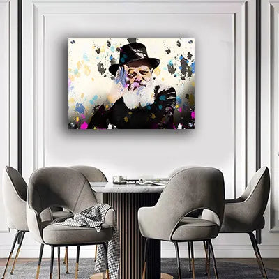 636 - ציור גרפיטי צבעוני של הרבי מליובאוויטש על קנבס או זכוכית מחוסמת