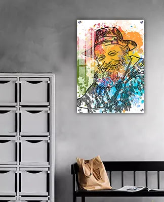 914 - ציור מודרני וצבעוני של הרבי מליובאוויטש מחייך על קנבס או זכוכית