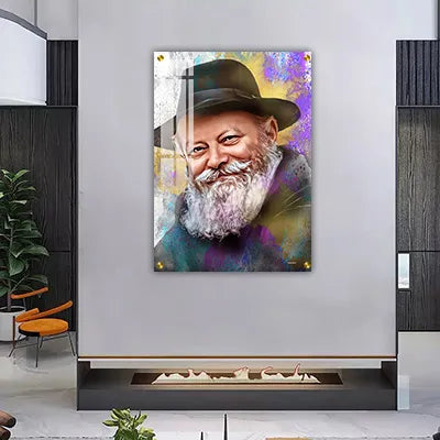 921 - ציור פופ ארט של הרבי מליובאוויטש מחייך על קנבס או זכוכית